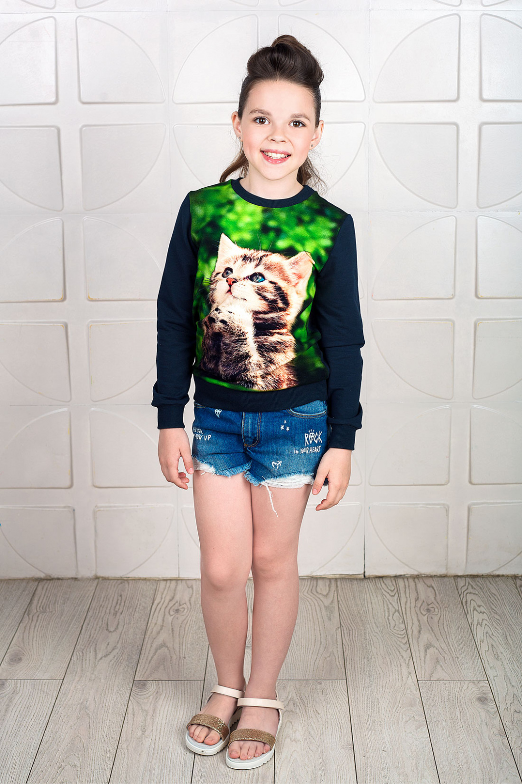 Описание: Очаровательный джемпер выполнен из полотна с дизайнерской набивкой.Ткань приятная на ощупь,не сковывает движений, обеспечивает комфорт.Отличный вариант для юной модницы на каждый день.